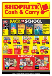 TO Page 4 SHARPEN YOUR SUPPLY LIST Contact your local Store on WhatsApp VRYBURG FICKSBURG SPRINGS VOSLOORUS NELSPRUIT PRETORIA WEST 078 619 0888 067 229 2431 084 759 2989 083 673 9708 083 463 2153 068 305 6341 Prices apply to Shoprite Cash & Carry Vryburg, Ficksburg, Springs, Vosloorus, Nelspruit and Pretoria West. Open an account in-store, or: Money Market Account is a division of Shoprite Checkers (Pty) Ltd (FSP7732). Ts&Cs apply. ORDER via WhatsApp PAY from your phone leaving your store! Restock without FREE DELIVERY within 50kms* WhatsApp: 087 240 5709 OFFERS VALID FROM MONDAY 5 JANUARY 2026 UNTIL SUNDAY 18 JANUARY 2026. WHILE STOCKS LAST. WE RESERVE THE RIGHT TO LIMIT QUANTITIES. TRADERS WELCOME. VAT INCLUDED. ERRORS AND OMISSIONS EXCEPTED. CUSTOMER CARE LINE 0800 01 07 09 (TOLL-FREE). SIGN UP TO OUR XTRA SAVINGS CLUB AND GET INSTANT CASH SAVINGS Simply dial *134*569* CARDNUMBER# for FREE to get started GNFOSWDRTW/E VIVILITE HIGHLIGHTERS 12x4 per pack 12 x 4s 39999 EQUIVALENT UNIT PRICE R33,33 PENFLEX RED BALLPOINT PENS 50 per box per box 14999 SCHOOL MULTICOLOURED RETRACTABLE WAX CRAYONS 12x10 per pack 12 x 10s 39999 EQUIVALENT UNIT PRICE R33,33 PENFLEX BALLPOINT PENS all variants 50 per box per box 14999 PENFLEX HIGLO HIGHLIGHTERS all variants 10 per box per box 10999 PENFLEX BLACK BULLET TIP PERMANENT MARKERS 10 per box per box 10999 PENFLEX BLACK BULLET TIP WHITEBOARD MARKERS 10 per box per box 12999 BIC ORANGE FINE BALLPOINT PENS all variants 60 per box per box 24999 45999 30 x 192 page SCHOLAR A4 FEINT & MARGIN HARDCOVER COUNTER BOOK 30x192 pages EQUIVALENT UNIT PRICE R15,33 35999 80 x 72 page SCHOLAR A4 COLLEGE EXERCISE BOOK 80x72 pages EQUIVALENT UNIT PRICE R4,50 33999 5 x 500 sheets TYPEK WHITE COPY A4 PAPER 5x500 sheets EQUIVALENT UNIT PRICE R67,99 33499 5 x 500 sheets SAPPI 1 PLUS A4 COPY PAPER SHEETS 5x500 sheets EQUIVALENT UNIT PRICE R66,99 52999 40 x 100 page A4 EXAM PAD 40x100 pages EQUIVALENT UNIT PRICE R13,25 89999 24 x 43g PRITT GLUE STICK DISPENSER 24x43g per pack EQUIVALENT UNIT PRICE R37,49 VIVILITE HIGHLIGHTERS 12x5 per pack 12 x 5s 27999 EQUIVALENT UNIT PRICE R23,33 SCHOOL ASSORTED FLUORESCENT BALLPOINT PENS 20x10 per pack 20 x 10s 44999 EQUIVALENT UNIT PRICE R22,50 BIC CLIC BLACK MEDIUM BALLPOINT PENS 60 per box per box 39999 JIFFY KRAFT BROWN PAPER ROLL 2m x 480mm per pack 19999 EQUIVALENT UNIT PRICE R4 BOSTIK PRESTIK WALLET 24x100g 24 x 100g 34999 EQUIVALENT UNIT PRICE R14,58 JIFFY HEAVY DUTY POLYTHENE ROLL 3m x 480mm per pack 59999 EQUIVALENT UNIT PRICE R12 BIC KIDS EVOLUTION STRIPES COLOURING PENCILS 12x12 per pack 12 x 12s 26999 EQUIVALENT UNIT PRICE R22,50 FLIP FILE DISPLAY FILE 25x20 Pockets 25 x 20s 54999 EQUIVALENT UNIT PRICE R22 BIC KIDS TWIST WAX CRAYONS 10x12 per pack 10 x 12s 35999 EQUIVALENT UNIT PRICE R36 BRIGHT COLOURS COLOURED PENCILS 12x12 per pack 12 x 12s 19999 EQUIVALENT UNIT PRICE R16,67
