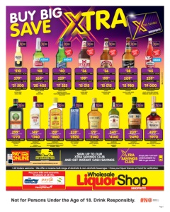 Page 2 Not for Persons Under the Age of 18. Drink Responsibly. OFFERS VALID FROM MONDAY 23 MARCH 2026 UNTIL MONDAY 06 APRIL 2026. PRICES APPLY TO SHOPRITE WHOLESALE LIQUORSHOPS. PRICES NOT VALID AT SHOPRITE LIQUORSHOP. DUE TO GOVERNMENT REGULATIONS, LIQUOR TRADING HOURS MAY VARY. LIQUOR ONLY AVAILABLE AT STORES WITH A VALID LIQUOR LICENCE. WE RESERVE THE RIGHT TO LIMIT QUANTITIES. VAT INCLUDED. ERRORS & OMISSIONS EXCEPTED (E&OE). WHILE STOCKS LAST. CUSTOMER CARE LINE 0800 01 07 09 (TOLL-FREE). WE DELIVER FREE Ts & Cs APPLY www.shopritecashandcarry.co.za OR SCAN shopritecashandcarry.co.za Wholesale START SHOPPING AT • Anderbolt • Diepkloof • Ficksburg • Idutywa • King William’s Town • Mount Frere • Nelspruit • Philippi Plaza • Pretoria West • Qwa Qwa Liquors • Springs • Vosloorus • Vryburg GNLSLWAKOY/E 500ml CASTLE LITE BEER 500ml cans 32999 R16 450 R29 475 24x500ml 50x24x500ml 90x24x500ml Unit Price p/case 13,75 Unit Price p/case 13,71 Unit Price p/pallet 13,65 500ml WINDHOEK PREMIUM DRAUGHT BEER 500ml cans 37999 R15 100 R33 750 24x500ml 40x24x500ml 90x24x500ml Unit Price p/case 15,83 Unit Price p/case 15,73 Unit Price p/pallet 15,63 BELL’S BLENDED SCOTCH WHISKY 750ml R2490 20999 1x750ml 12x750ml Unit Price p/case 207,50 JOHNNIE WALKER RED LABEL BLENDED SCOTCH WHISKY 750ml R2875 23999 1x750ml 12x750ml Unit Price p/case 239,58 AMARULA ORIGINAL/COFFEE/RASPBERRY, CHOCOLATE & AFRICAN BAOBAB CREAM LIQUEUR 750ml R1800 15499 1x750ml 12x750ml Unit Price p/case R150 OLOF BERGH BRANDY 750ml R2100 17999 1x750ml 12x750ml Unit Price p/case R175 CAPTAIN MORGAN ORIGINAL SPICED GOLD SPIRIT APERITIF 750ml R2010 16999 1x750ml 12x750ml Unit Price p/case 167,50 AUTUMN HARVEST DRY WHITE/ROSÉ CRACKLING WINE 1,5l R330 5699 1x1,5l 6x1,5l Unit Price p/crate R55 4TH STREET WINE all variants 3l R630 10999 1x3l 6x3l Unit Price p/crate R105 EXCLUDING BOTTLE & CRATE DEPOSIT EXCLUDING CRATE DEPOSIT 3l 1l 2l 5l 1,5l PONGRÁCZ BRUT/NOBLE NECTAR CAP CLASSIQUE 750ml R1050 17999 1x750ml 6x750ml Unit Price p/case R175 ROBERTSON WINERY OLD CHAPEL NATURAL SWEET RED/ROSÉ/ RED CABERNET SAUVIGNON MERLOT 750ml R260 4499 1x750ml 6x750ml Unit Price p/case 43,33 ELEPHANT’S COUSIN WINE all variants 1l R475 3999 1x1l 12x1l Unit Price p/case 39,58 CIAO COCKTAIL all variants 2l R690 11999 1x2l 6x2l Unit Price p/case R115 RAIN DANCE WINE all variants 5l R600 15499 1x5l 4x5l Unit Price p/case R150 500ml SAVANNA DRY/ANGRY LEMON PREMIUM CIDER 500ml NRB 27999 R20 625 12x500ml 75x12x500ml Unit Price p/bottle 23,33 Unit Price p/pallet 22,92 500ml 500ml BRUTAL FRUIT RUBY APPLE/ LITCHI SÈCHE SPRITZER 500ml cans R195 38499 R34 200 2x6x500ml 24x500ml 90x24x500ml Unit Price p/can 16,25 Unit Price p/case 16,04 Unit Price p/pallet 15,83 440ml BLACK CROWN GIN & TONIC/DRY LEMON WITH MARULA SPIRIT COOLER 440ml cans R220 40999 R36 000 2x6x440ml 24x440ml 90x24x440ml Unit Price p/can 18,33 Unit Price p/case 17,08 Unit Price p/pallet 16,67 HOOCH BLAST SPRITZER all variants 440ml cans R240 45499 R40 500 2x6x440ml 24x440ml 90x24x440ml Unit Price p/can R20 Unit Price p/case 18,96 Unit Price p/pallet 18,75 440ml 440ml KLIPDRIFT & COLA 440ml cans R250 48999 R43 650 2x6x440ml 24x440ml 90x24x440ml Unit Price p/can 20,83 Unit Price p/case 20,42 Unit Price p/pallet 20,21 440ml EXTREME APPLE ALE 440ml cans R175 50999 R45 675 2x4x440ml 24x440ml 90x24x440ml Unit Price p/can 21,88 Unit Price p/case 21,25 Unit Price p/pallet 21,15 CARLING BLACK LABEL BEER 500ml cans 32999 R16 450 R29 475 24x500ml 50x24x500ml 90x24x500ml Unit Price p/case 13,75 Unit Price p/case 13,71 Unit Price p/pallet 13,65 500ml BOMBAY SAPPHIRE LONDON DRY GIN 750ml R3540 29999 1x750ml 12x750ml Unit Price p/case R295 EICHBAUM STOUT BEER 500ml cans 10999 41999 R16 000 6x500ml 24x500ml 40x24x500ml Unit Price p/can 18,33 Unit Price p/case 17,50 Unit Price p/case 16,67