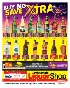 Page 2 Not for Persons Under the Age of 18. Drink Responsibly. WE DELIVER FREE Ts & Cs APPLY www.shopritecashandcarry.co.za OR SCAN shopritecashandcarry.co.za Wholesale OFFERS VALID FROM TUESDAY 07 APRIL 2026 UNTIL SUNDAY 19 APRIL 2026. PRICES APPLY TO SHOPRITE WHOLESALE LIQUORSHOPS. PRICES NOT VALID AT SHOPRITE LIQUORSHOP. DUE TO GOVERNMENT REGULATIONS, LIQUOR TRADING HOURS MAY VARY. LIQUOR ONLY AVAILABLE AT STORES WITH A VALID LIQUOR LICENCE. WE RESERVE THE RIGHT TO LIMIT QUANTITIES. VAT INCLUDED. ERRORS & OMISSIONS EXCEPTED (E&OE). WHILE STOCKS LAST. CUSTOMER CARE LINE 0800 01 07 09 (TOLL-FREE). • Anderbolt • Diepkloof • Ficksburg • Idutywa • King William’s Town • Mount Frere • Nelspruit • Philippi Plaza • Pretoria West • Qwa Qwa Liquors • Springs • Vosloorus • Vryburg START SHOPPING AT GNLSLWAKOZ/E 500ml 500ml 500ml 500ml 500ml 1l 1l EXCLUDING BOTTLE & CRATE DEPOSIT 3l 5l 1l 1l 500ml BERNINI CLASSIC/AMBER/BLUSH/ MIMOSA SPARKLING SPRITZER 500ml cans R28 500 R14 330 19999 1666 1658 1649 Pallet Case Case 12x500ml SINGLE UNIT SINGLE UNIT SINGLE UNIT 72x12x500ml 144x12x500ml SAVANNA DRY PREMIUM CIDER 500ml cans R38 160 R19 260 26999 2250 2229 2208 Pallet Case Case 12x500ml SINGLE UNIT SINGLE UNIT SINGLE UNIT 72x12x500ml 144x12x500ml CASTLE LAGER BEER 500ml cans R26 910 29999 R160 1333 1250 1245 Pallet Case Can 2x6x500ml SINGLE UNIT SINGLE UNIT SINGLE UNIT 24x500ml 90x24x500ml CARLING BLACK LABEL BEER 500ml cans R29 475 32999 R170 1417 1375 1364 Pallet Case Can 2x6x500ml SINGLE UNIT SINGLE UNIT SINGLE UNIT 24x500ml 90x24x500ml FLYING FISH PRESSED LEMON FLAVOURED BEER 500ml cans R30 375 33999 R190 1583 1416 1406 Pallet Case Can 2x6x500ml SINGLE UNIT SINGLE UNIT SINGLE UNIT 24x500ml 90x24x500ml AMSTEL PREMIUM/RADLER LAGER BEER 500ml cans R31 275 34999 R180 R15 1458 1447 Pallet Case Can 2x6x500ml SINGLE UNIT SINGLE UNIT SINGLE UNIT 24x500ml 90x24x500ml BRUTAL FRUIT RUBY APPLE/STRAWBERRY ROUGE/LITCHI SÈCHE SPRITZER 275ml NRB R24 150 28999 R150 1250 1208 1197 Pallet Case Bottle 2x6x275ml SINGLE UNIT SINGLE UNIT SINGLE UNIT 24x275ml 84x24x275ml HUNTER’S DRY/GOLD CIDER 330ml NRB R20 700 34999 R180 R15 1458 1437 Pallet Case Bottle 2x6x330ml SINGLE UNIT SINGLE UNIT SINGLE UNIT 24x330ml 60x24x330ml PAARL PERLÉ DRY WHITE WINE 1l R425 3699 3541 Crate SINGLE UNIT 1x1l 12x1l ROBERTSON WINERY NATURAL SWEET ROSÉ/RED/WHITE/ SMOOTH RED BLEND WINE 3l R460 11999 R115 Case SINGLE UNIT 1x3l 4x3l JUST WINE NATURAL SWEET RED/WHITE/ ROSÉ WINE 5l R610 15499 15250 Case SINGLE UNIT 1x5l 4x5l NEDERBURG BARONNE CABERNET SAUVIGNON/ SHIRAZ RED BLEND WINE 750ml R930 7999 7750 Case SINGLE UNIT 1x750ml 12x750ml ROBERTSON WINERY MIMOSA ORANGE/BERRY INFUSED SPARKLING SPRITZER 750ml R470 7999 7833 Case SINGLE UNIT 1x750ml 6x750ml HUNTLEY COOPER COCKTAIL all variants 1l each R515 4499 4292 Case SINGLE UNIT 1x1l 12x1l STRAWBERRY LIPS CREAM LIQUEUR 750ml R820 13999 13666 Case SINGLE UNIT 1x750ml 6x750ml RUSSIAN BEAR ORIGINAL PREMIUM VODKA 1l R2310 19499 19250 Case SINGLE UNIT 1x1l 12x1l HARRIER WHISKY 1l R2490 20999 20750 Case SINGLE UNIT 1x1l 12x1l J&B RARE BLENDED SCOTCH WHISKY 750ml R2460 20999 R205 Case SINGLE UNIT 1x750ml 12x750ml RED SQUARE VODKA 750ml R930 15999 R155 Case SINGLE UNIT 1x750ml 6x750ml BELGRAVIA LONDON DRY GIN 750ml R930 15999 R155 Case SINGLE UNIT 1x750ml 6x750ml